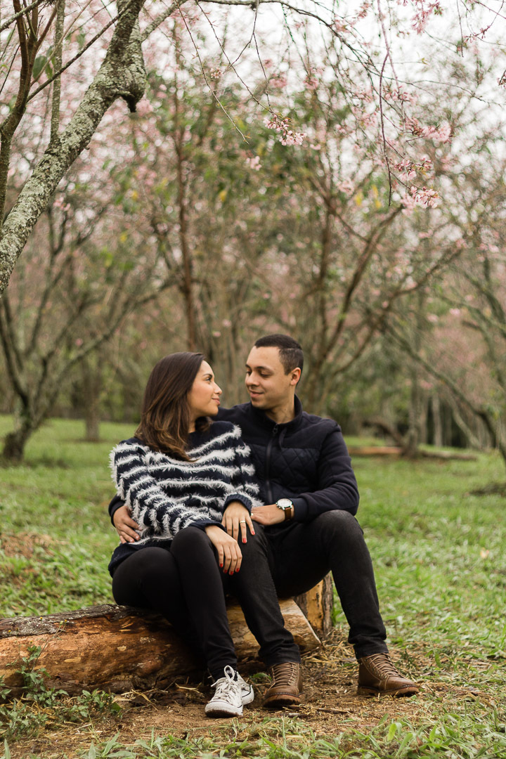 Fizemos o ensaio deles no Parque do Carmo, numa das melhores épocas que é quando a Cerejeiras estão floridas. Dá uma conferida! 😉
